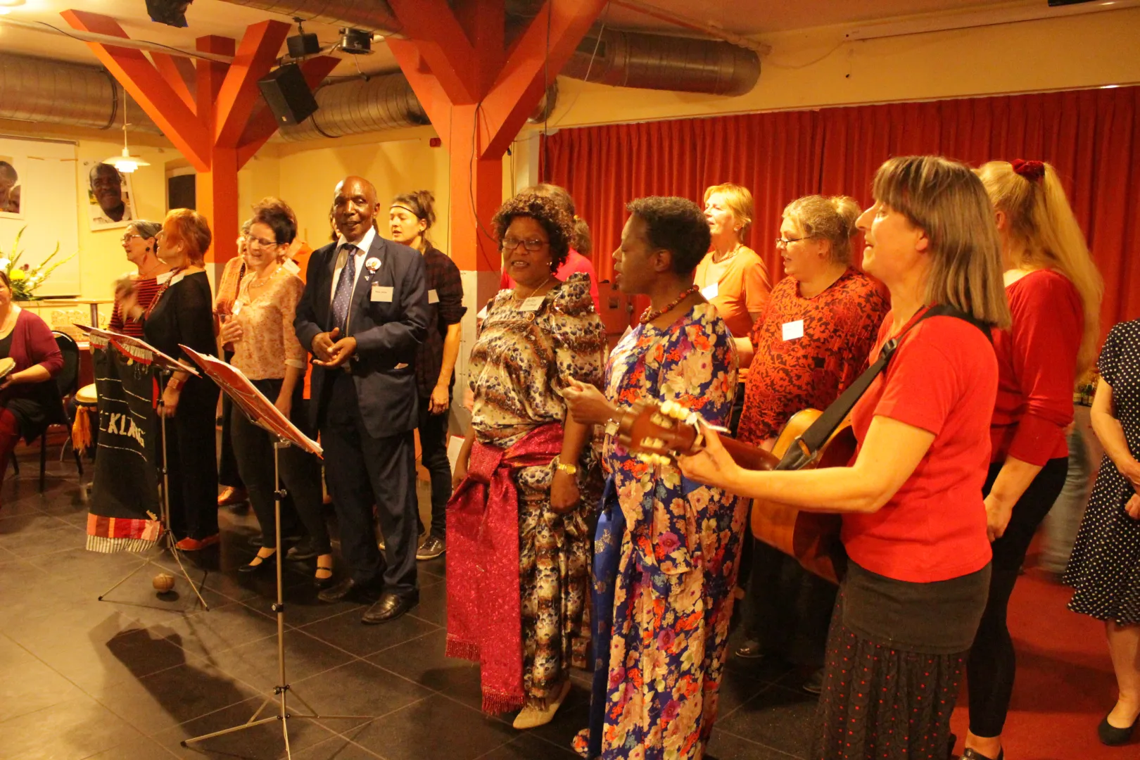 Am 12. Oktober 2018 feierten wir deshalb mit unseren Mitgliedern und den treuesten Spendern ein Jubiläumsfest. Dass es tatsächlich ein afrikanischer Abend wurde, ist dem Chor „MissKlang“ zu verdanken, der mit viel Freude und Rhythmus eine mitreißende Atmosphäre verbreitete. Auch die Musik von Dr. Claudius Möllmer, all die Grußworte und selbst die Beteiligung der Anwesenden am Buffet trugen zum Gelingen des Abends bei. Besondere Freude war es, dass Mr. Michael Kabonge, unser Besuch aus Uganda, Gast an dem Abend war. Ein Höhepunkt war ebenso die Übergabe eines Roll-up durch Frau Papenburg. So eine schöne Möglichkeit für die Öffentlichkeitsarbeit hatten wir uns schon lange gewünscht.